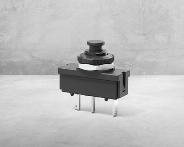 The thermal-magnetic 2215-L1 circuit breaker also has an extremely compact design. It is available with a slow, medium or fast characteristic curve, even with integrated auxiliary contact (changeover contact) upon request. This circuit breaker is typically used to protect electronic assemblies.