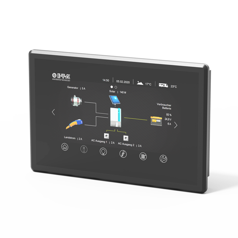 Relevant system data of electrical loads, sensors and operational states are recorded and displayed on the customer-specific user interfaces. The ON/OFF operation for all connected loads is accessible via touch operation. Various monitoring functions enable the user to act preventively.